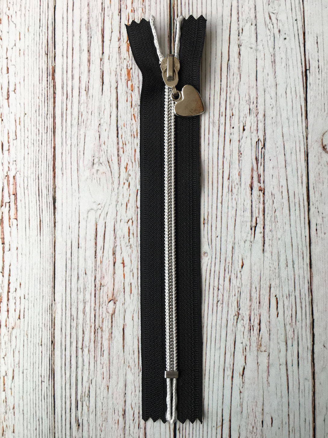 Cierre nylon negro con tirador con forma de corazón