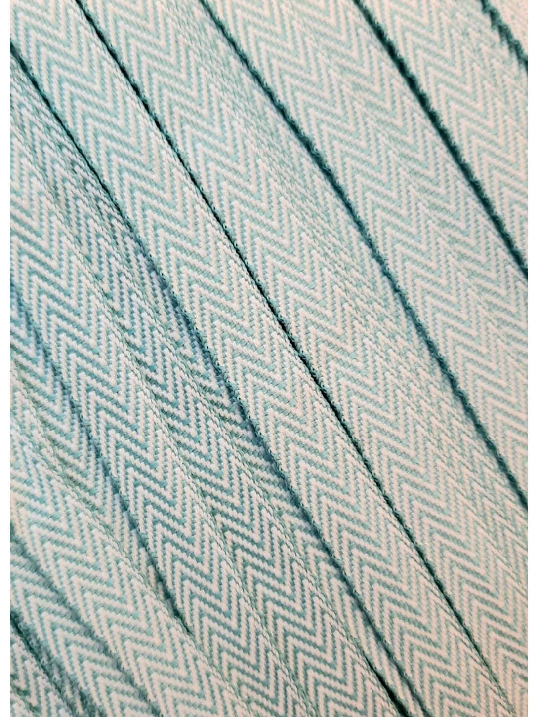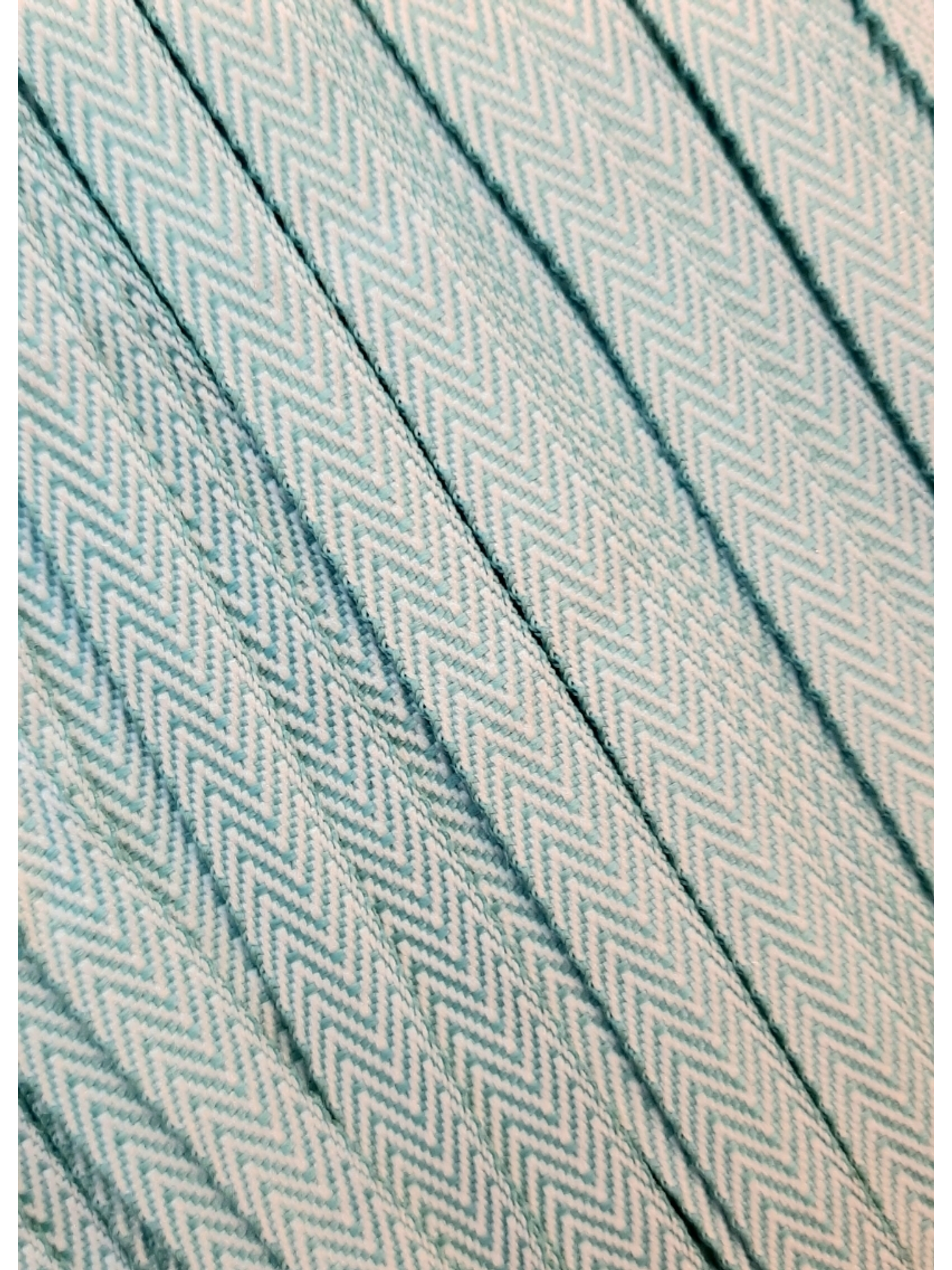 Cinta espiga de poliéster, color blanco y celeste.