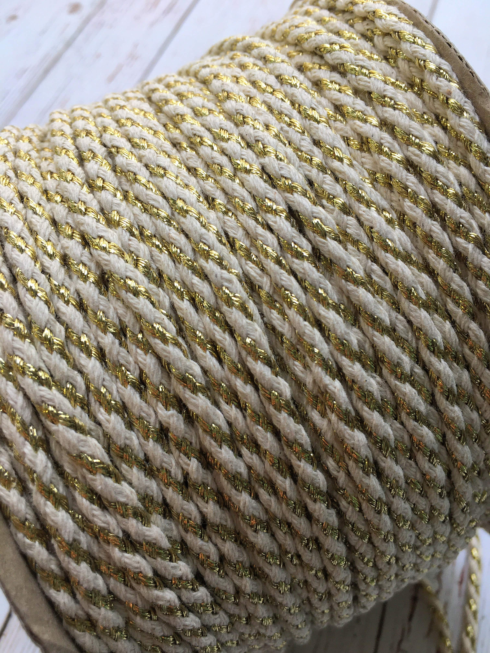 Cordel trenzado de 4mm de algodón con lúrex