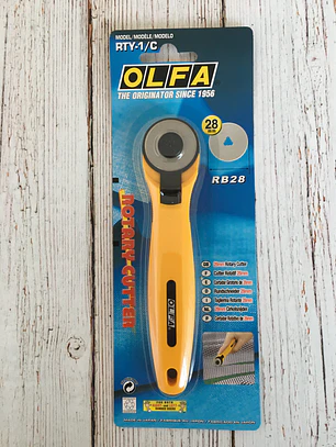 Cortador o cutter rotativo para tela de la marca especializada Olfa, ideal para cortar telas de forma precisa