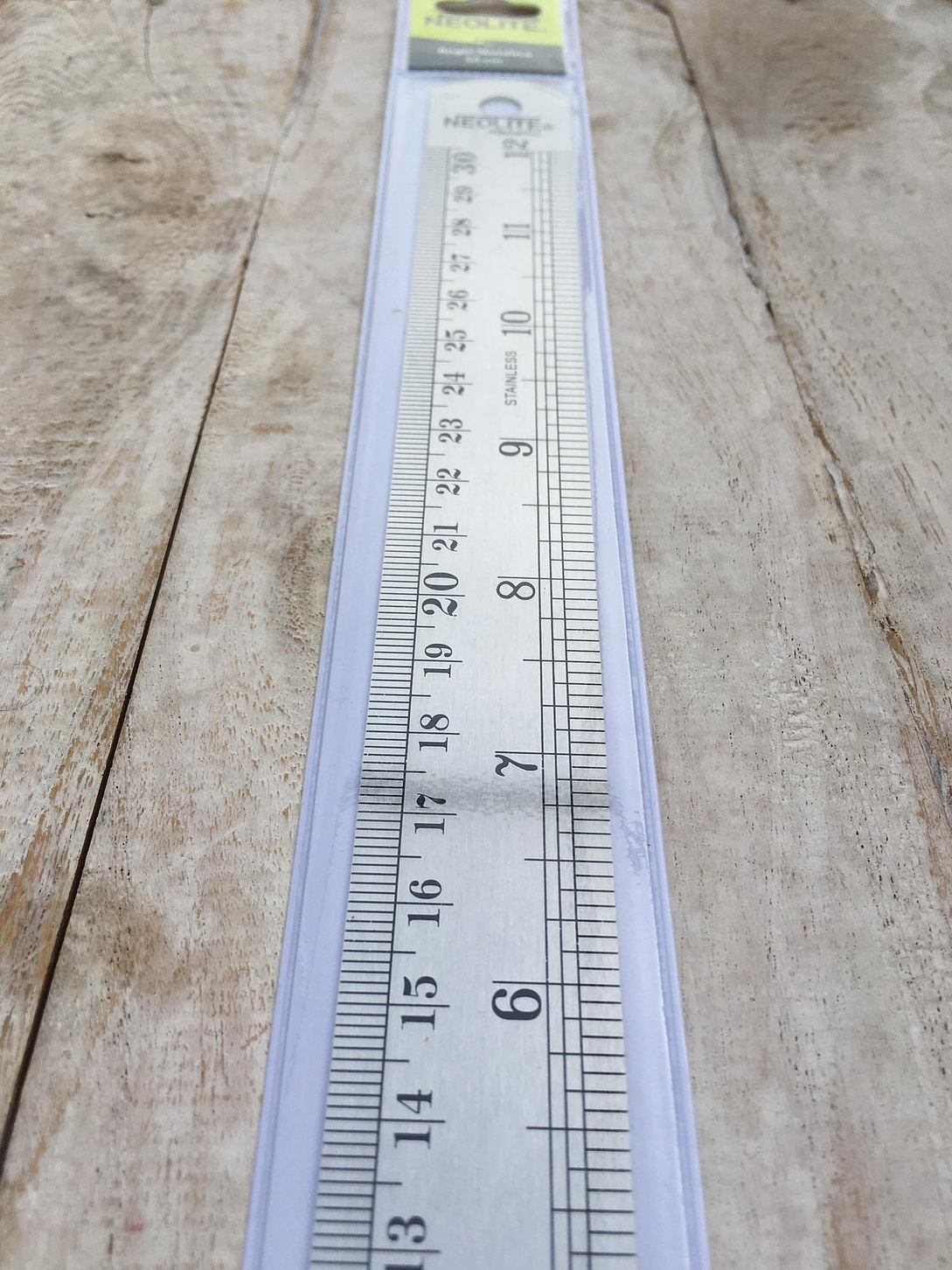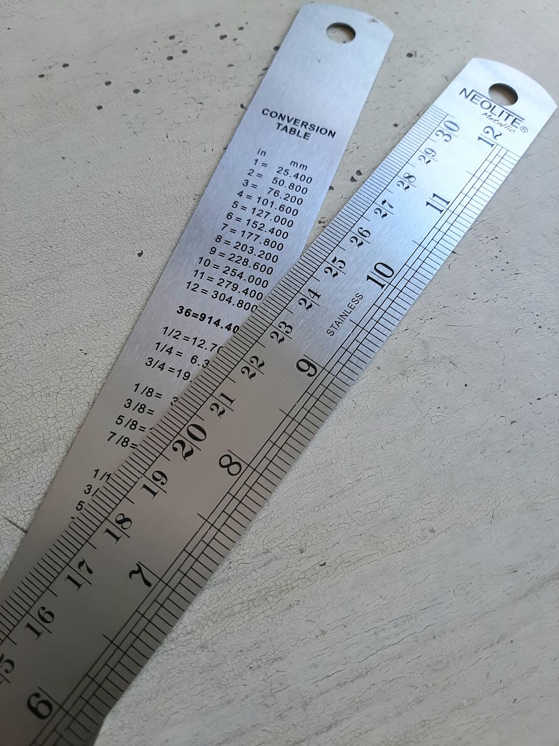 Regla metálica de 30cm con tablas de conversión al reverso