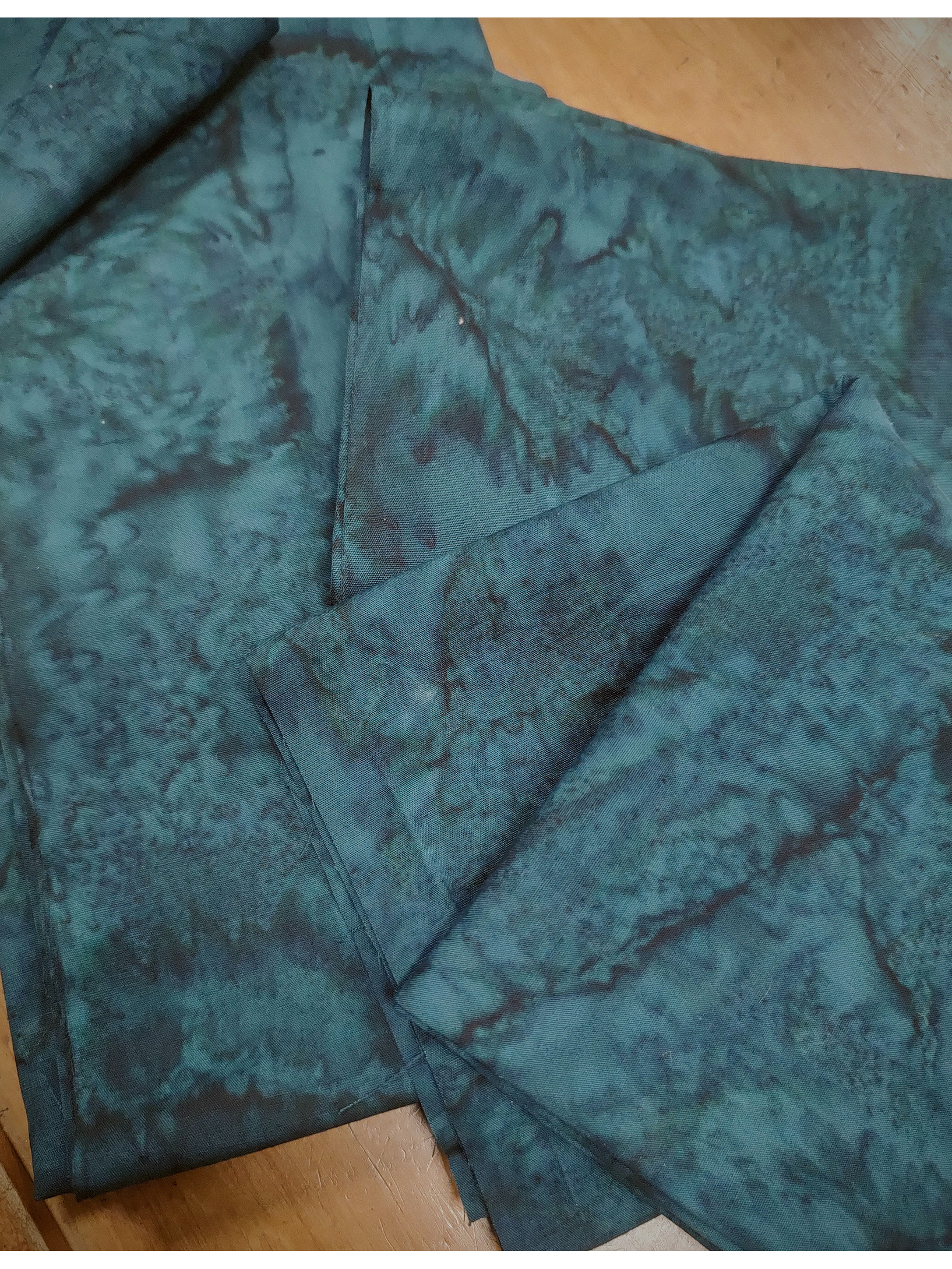 Corte de tela teñida artesanalmente con marmolado a la sal